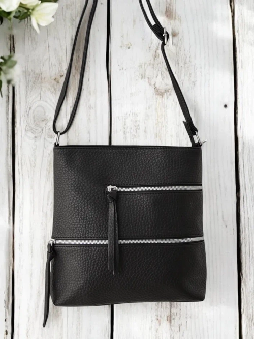 • Dámska taška na zips vyrobená z eko kože. Model má 1 priehradu, 3 vnútorné vrecká a 2 vonkajšie vrecká. Navyše nastaviteľný popruh. Ideálne na každodenné nosenie!