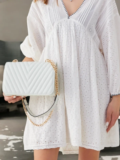 - Elegantná prešívaná malá dámska kabelka s magnetickým uzáverom, vyrobená z eko kože. Model má 1 prístupnú priehradku s deličom. Okrem toho má krásny reťazec. Perfektná na každodenné použitie!