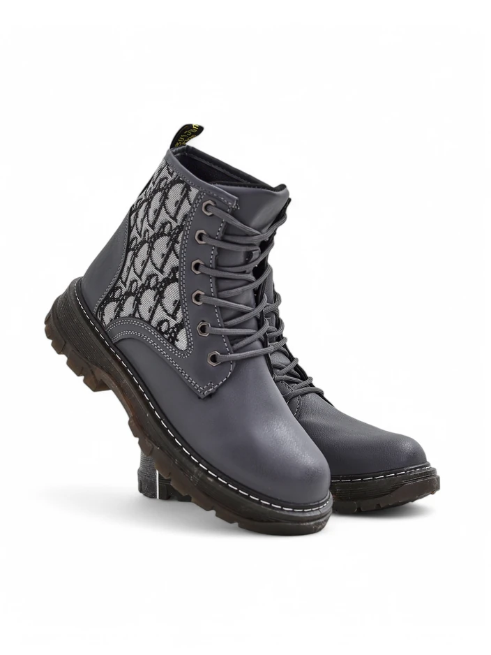 - Úžasné dámske členkové topánky s plochým podpätkom, vyrobené z eko-kože a látky s potlačou. Interiér je vyplnený látkou. Šnurovací model.