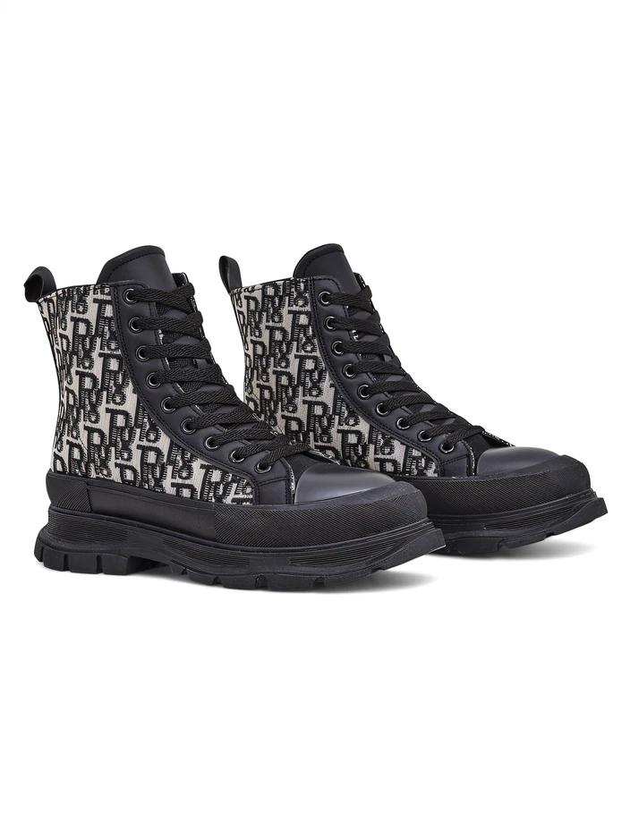 • Úžasné dámske členkové topánky s plochým podpätkom, vyrobené z eko-kože a potlačenej látky. Interiér je podšitý látkou. Model na šnurovanie.