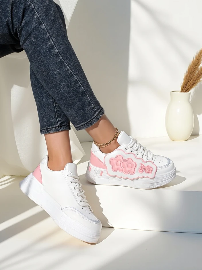 • Dámske tenisky vyrobené z ekokože s textilnou vložkou na platforme, kombinujúce pohodlie so štýlovou módou. Ideálne na každodenné nosenie, poskytujú ľahkosť a pohodlie, zatiaľ čo jemný dizajn pridáva eleganciu každej outfitu.