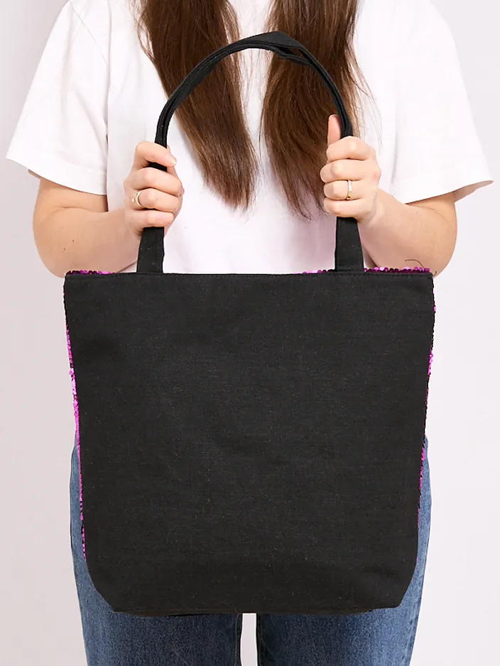 - Veľmi priestranná dámska taška vyrobená z materiálu pokrytého trblietkami. Model sa zapína na zips a má 1 veľkú priehradku a 2 rúčky. Ideálny výber na každodenné použitie alebo na pláž!
