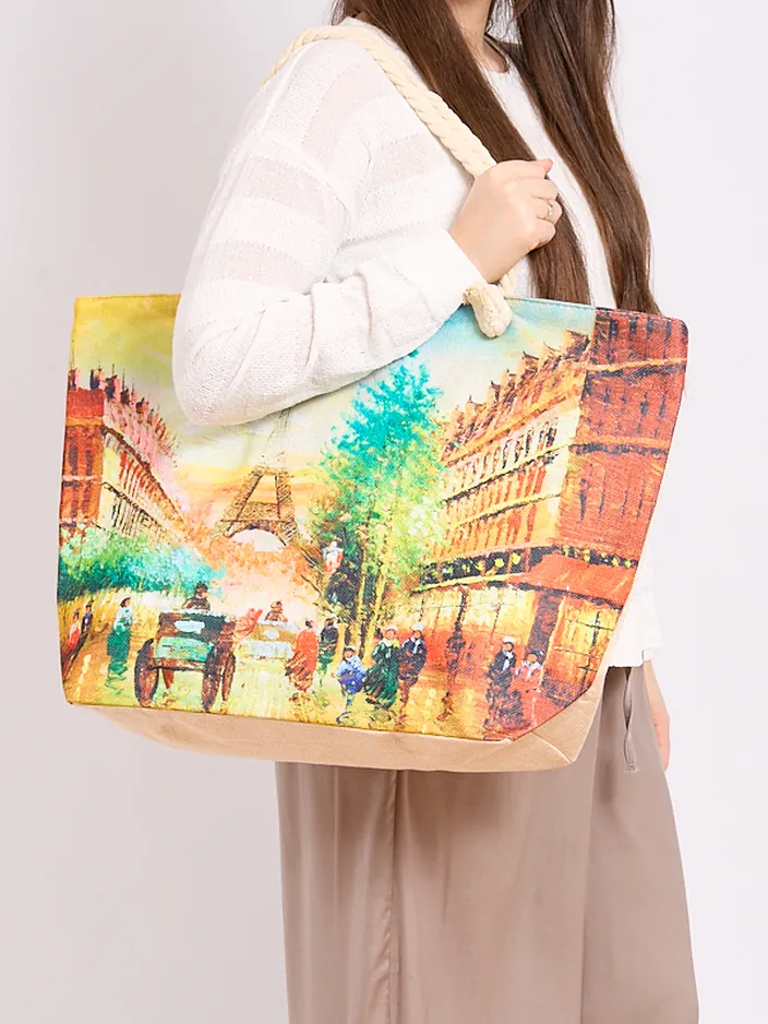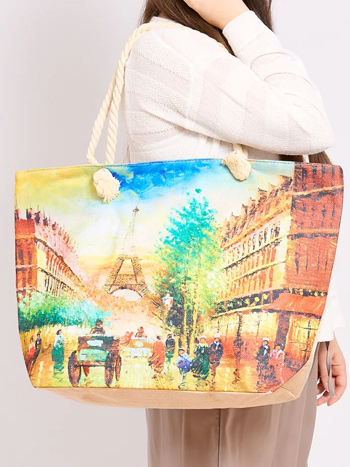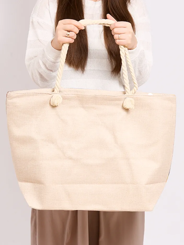 - Štýlová textilná taška dokončená potlačou. Kabelka s dlhšími rukoväťami, so zipsovým uzáverom a obsahuje 1 vnútornú vrecko. Perfektná na pláž!