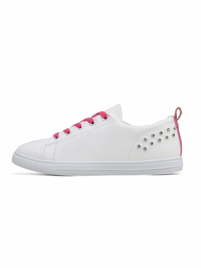 - Originálne dámske tenisky s plochou podrážkou - dokonalá kombinácia štýlu a pohodlia. Topánky sú vyrobené z eko-kože. Model so šnúrkami s textilnou stielkou. Ideálne pre aktívnych jednotlivcov!