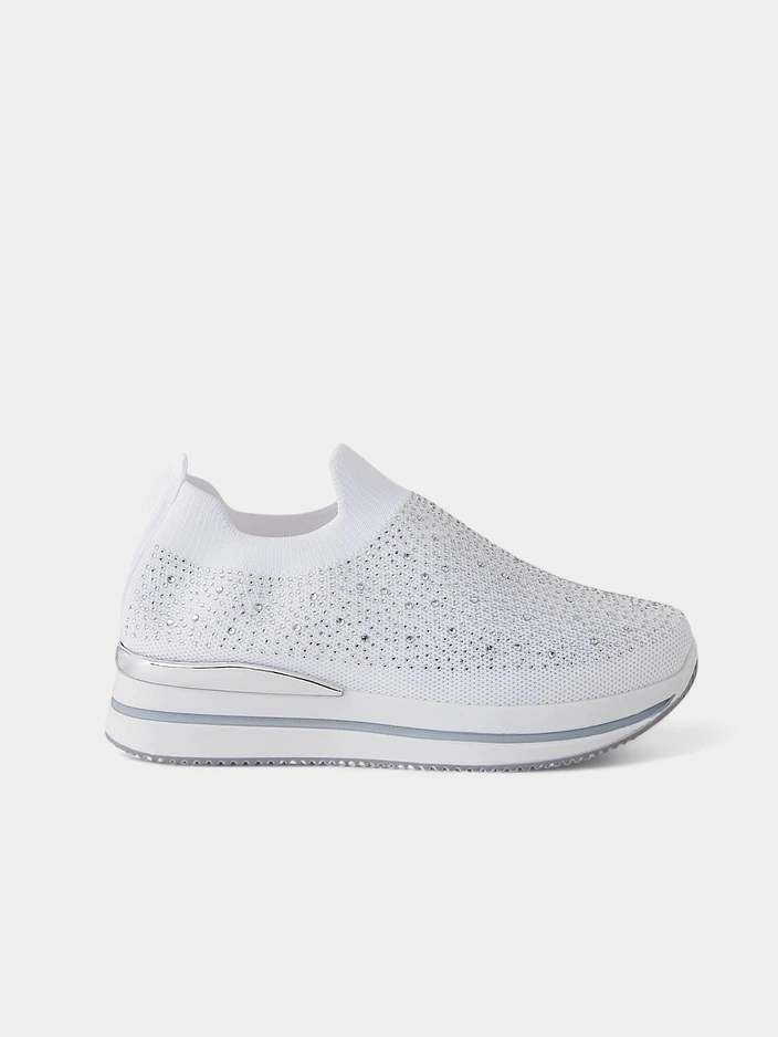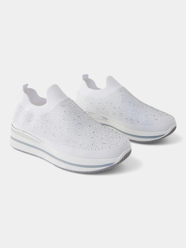 Royalfashion Dámske športové tenisky na zaväzovanie vyrobené z ekologickej kože s kamienkami Adeq