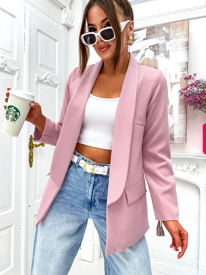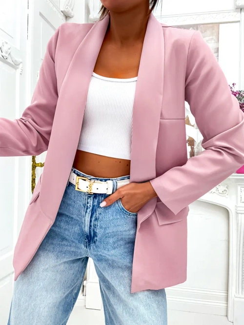 - Štýlový dámsky blejzer. Model s dlhými rukávmi, bez zapínania. Nevyhnutnosť tejto sezóny! POZNÁMKA: Presnosť merania (+/-) 1 cm.