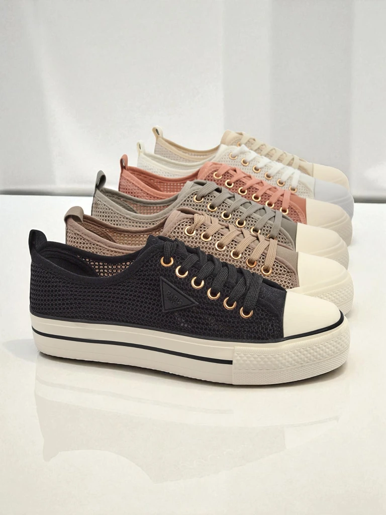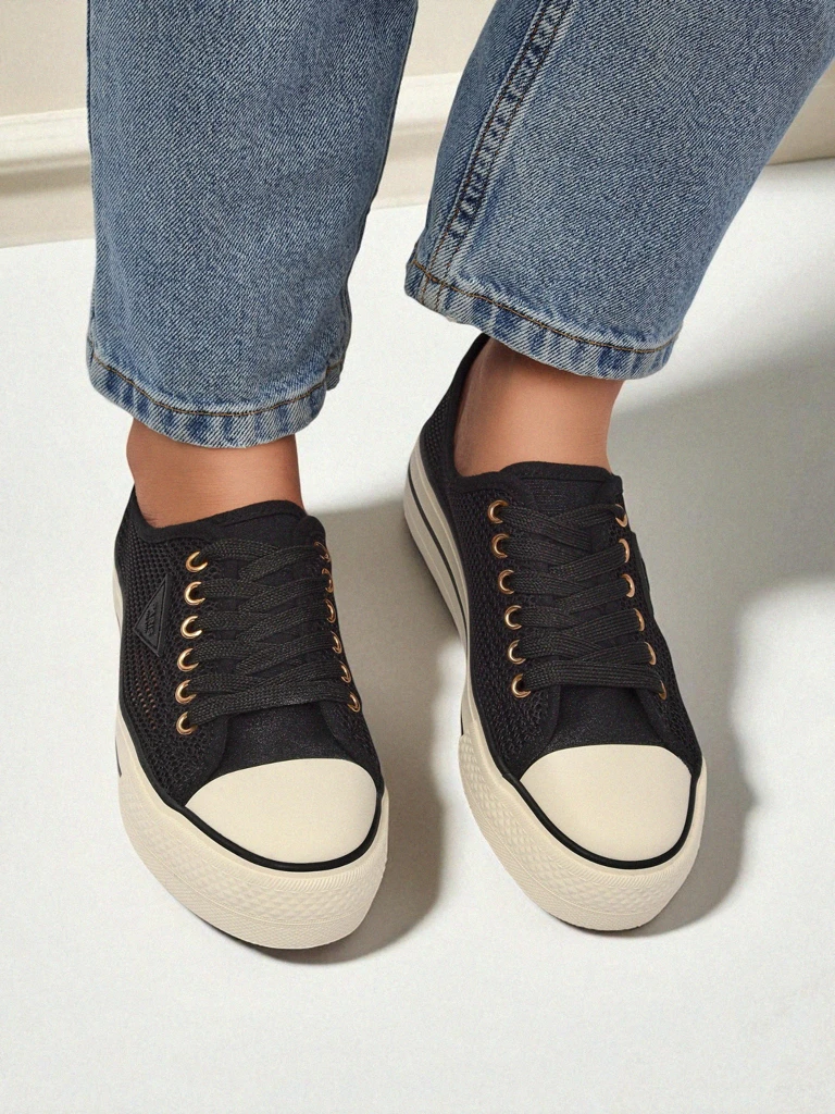 Preprosta oblika in mrežasta tkanina se ujemata z modo udobnih, zračnih superg, ki kraljujejo na ulicah največjih mest sveta. Črni športni copati na rahlo dvignjenem podplatu so eden najpogosteje izbranih modelov te sezone – prilegajo se skoraj vsemu in vam omogočajo, da izrazite svoj osebni stil.