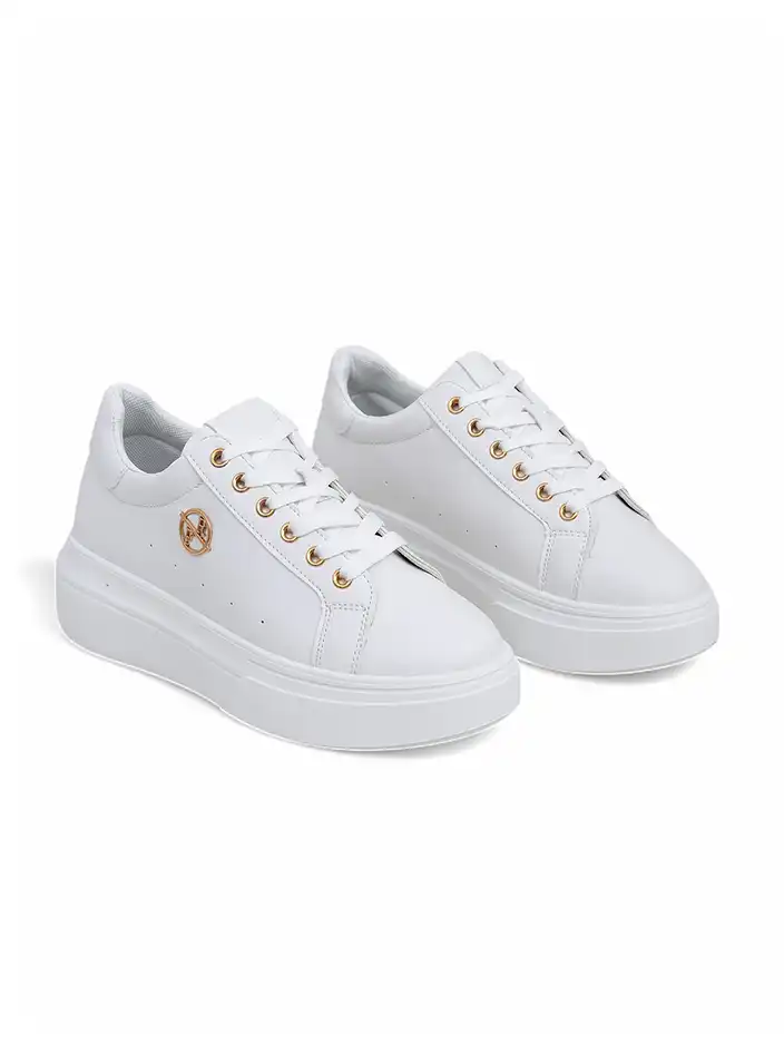 - Sneakersy damskie na platformie - perfekcyjne połączenie stylu i komfortu. Obuwie wykonane z eko skóry. Model sznurowany, posiada tkaninową wkładkę. Idealne dla aktywnych osób!