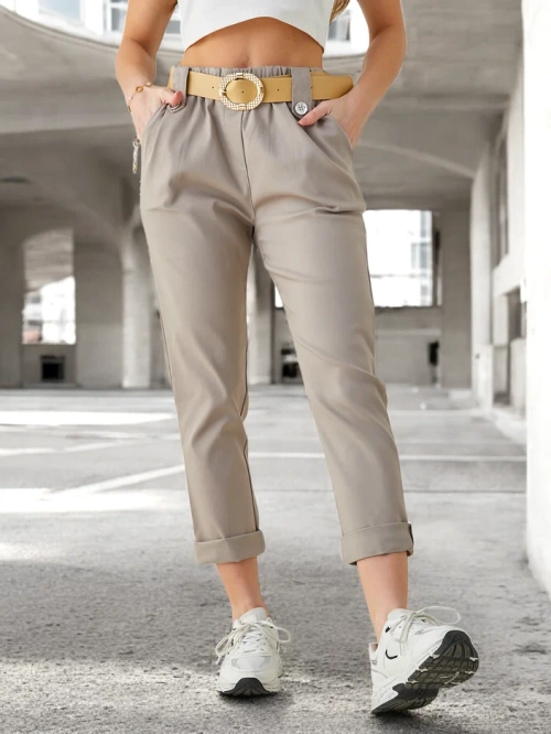 - Fenomenálne zúžené nohavice vyrobené z ľahkej tkaniny, model má elastický pás a opasok. Okrem toho sú k dispozícii 2 vrecká. Hit tejto sezóny! POZNÁMKA: Presnosť merania (+/-) 1 cm.