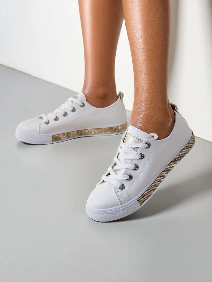 - Klasické tenisky vyrobené z ekologickej kože, vnútro je podšité tkaninou. Veľmi pohodlné vďaka gumovej podrážke so kamienkami v rôznych farbách. Obuv sa hodí k mnohým každodenným štýlom!