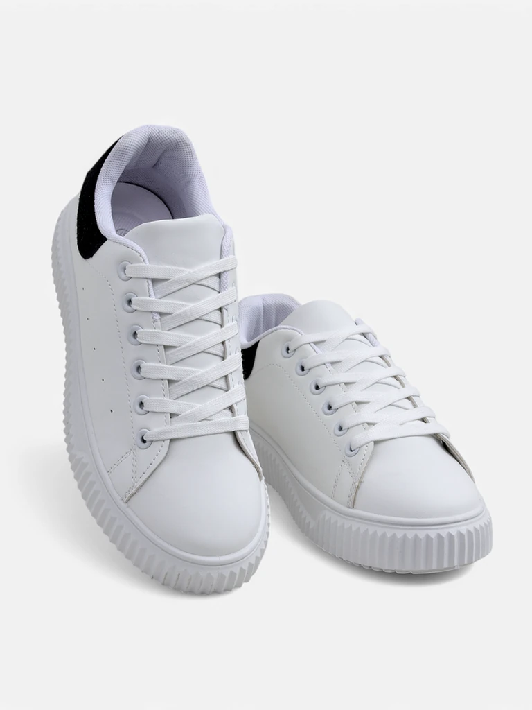 Ženske superge Callista s platformo iz ekološkega usnja bele-črne