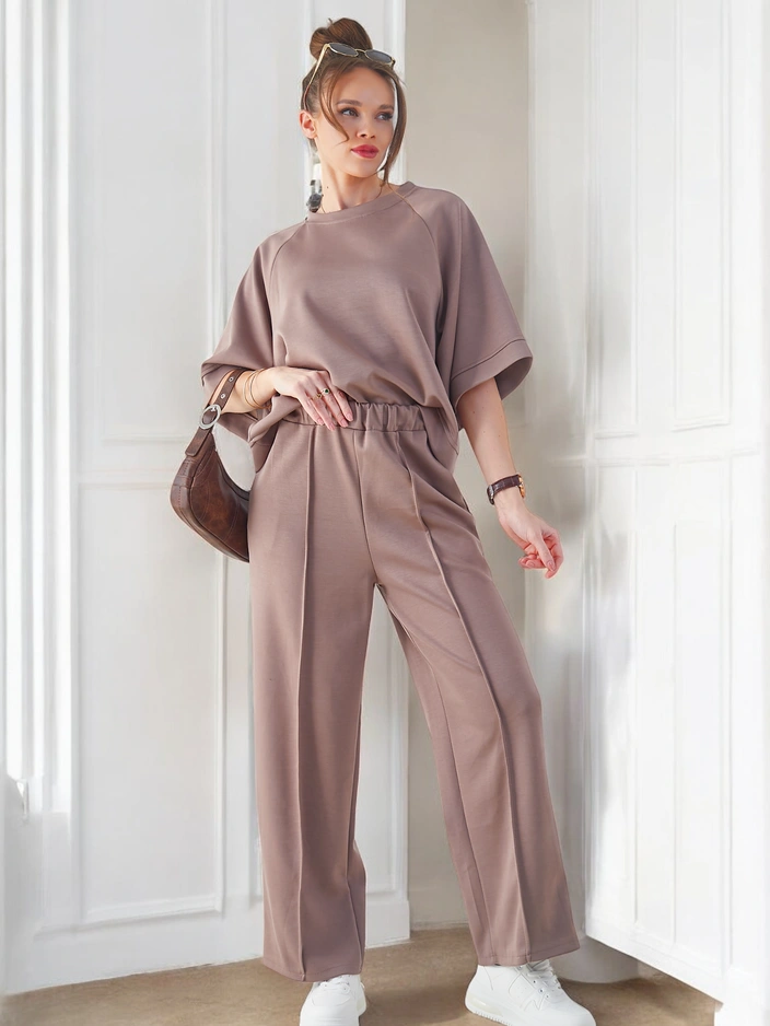 Royalfashion dámsky set s krátkymi rukávmi a širokými nohavicami