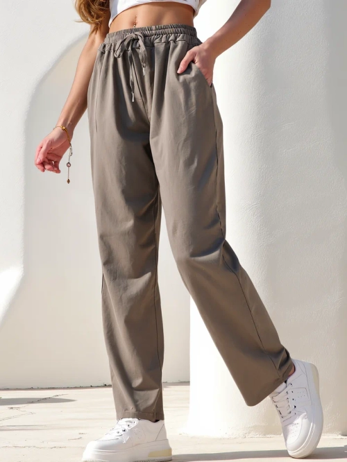 - Širšie nohavice vyrobené z ľahkej tkaniny, model má elastický pás a dve vrecká. Pohodlné a útulné! POZNÁMKA: Presnosť merania (+/-) 1 cm.