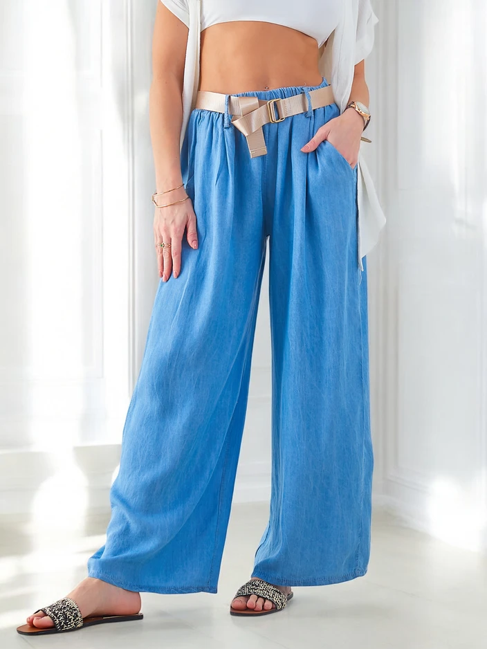 Royalfashion Ľahké široké dámske nohavice s pásom