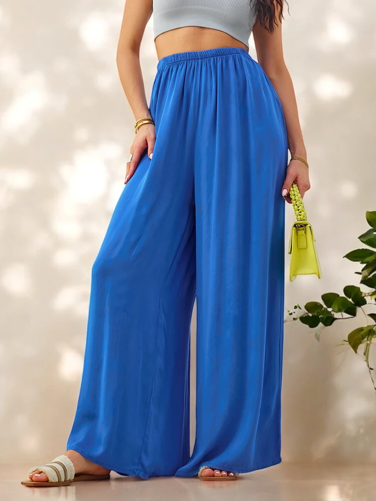 - Širšie nohavice vyrobené zo svetlej látky, model má elastický pás. Pohodlné a útulné! POZNÁMKA: Presnosť merania (+/-) 1 cm.