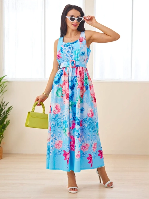 Royalfashion Dámske viskózové midi šaty s ramienkami, s opaskom v rôznych kvetinových vzoroch