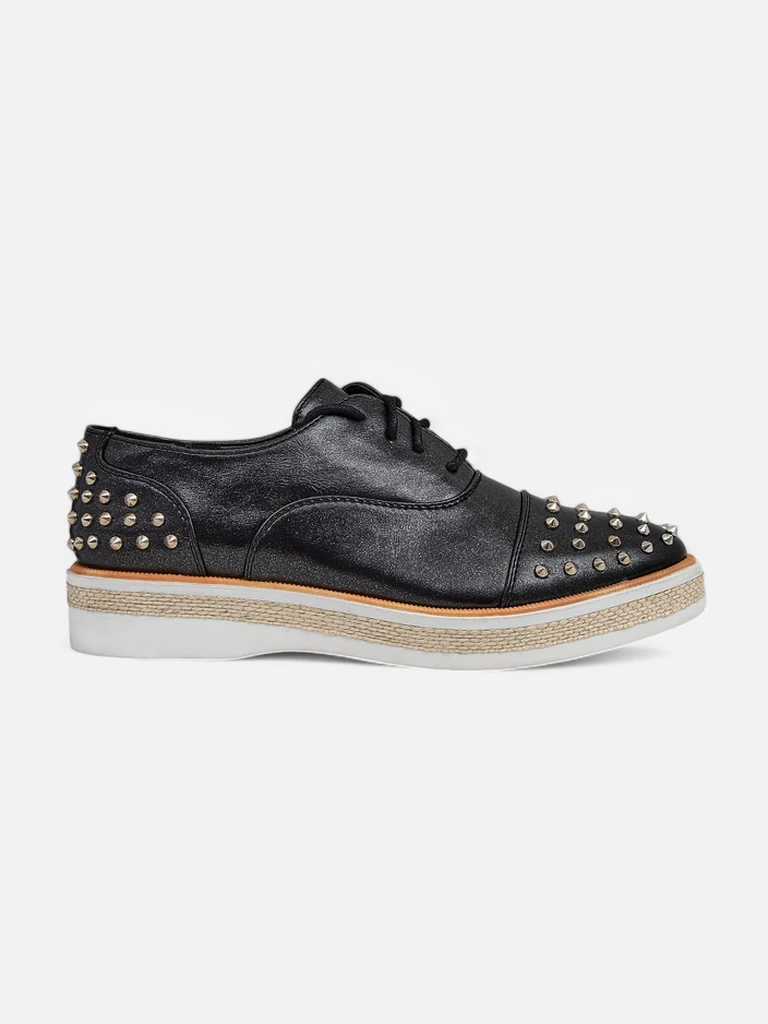 - dámske topánky na ploché podrážke. Vrchná časť je vyrobená z eko kože, zdobená cvokmi, stielka je zo eko kože. Ideálny základ pre každodenné outfity!