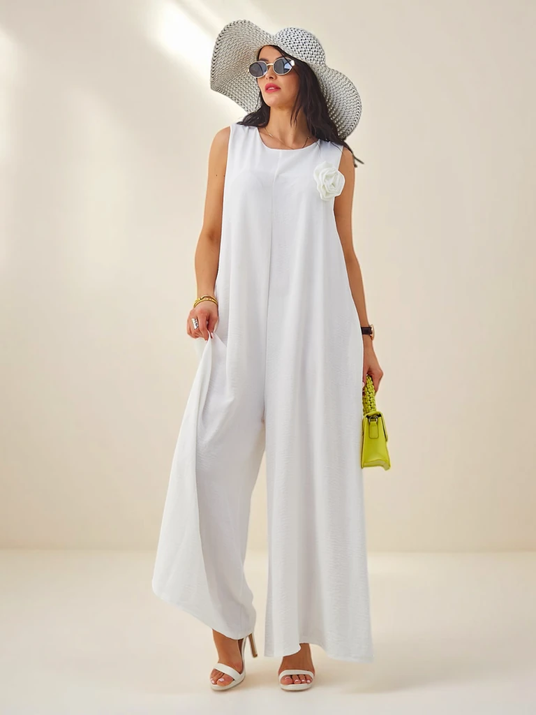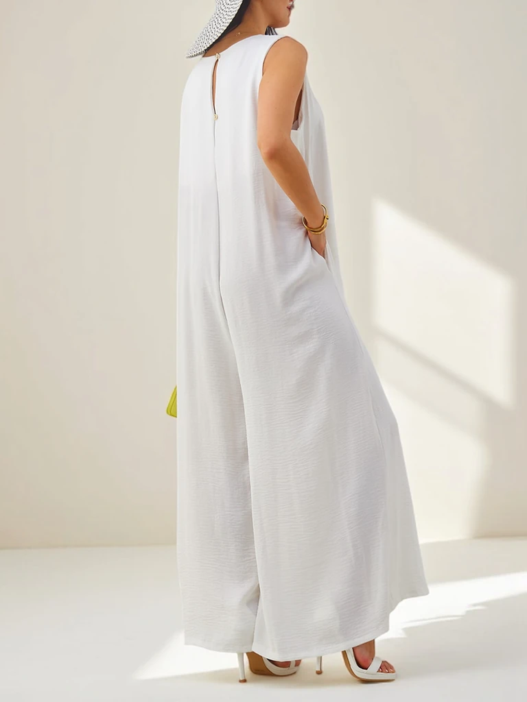 • Dolga kombinezon iz viskoze z naramnicami in širokimi hlačami – lahek, zračen in udoben, idealen za poletne dni. POZOR: Natančnost meritve (+/-) 1 cm.