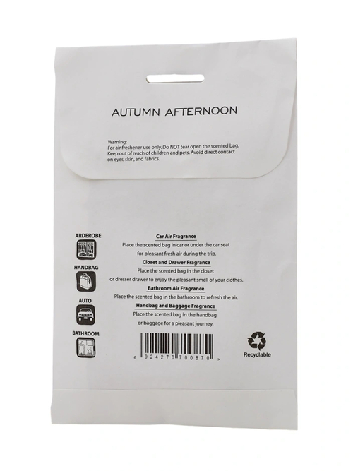 • Vôňové vrecúška sú ideálnym riešením pre príjemnú vôňu vo vašom aute, kabelke, šatníku alebo kúpeľni. Vďaka svojej kompaktnej veľkosti účinne odstraňujú nepríjemné pachy a zanechávajú sviežu a príjemnú vôňu v každej miestnosti!