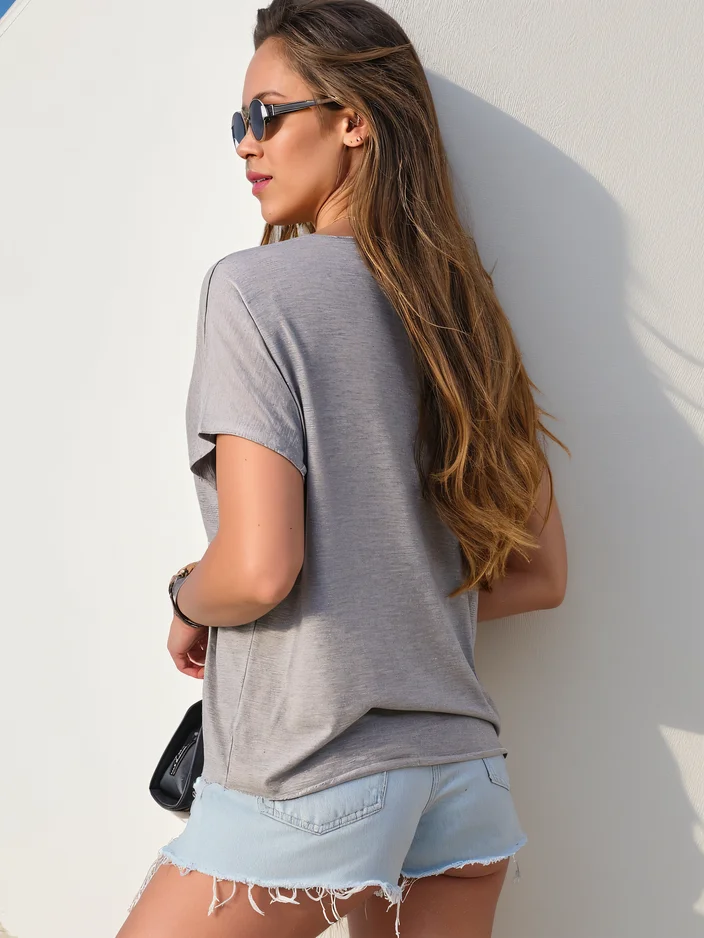 - Viskózová dámska blúzka s krátkymi rukávmi a lesklým povrchom – ľahká, lesklá a plná jemného lesku, ideálna na večerné vychádzky.