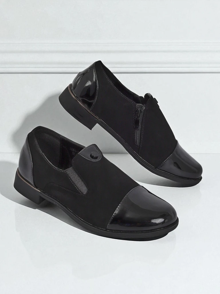 - Ženski nizki čevlji z ravnim podplatom. Zgornji del je izdelan iz mat in lakiranega eko usnja, vložek pa je iz ekološkega usnja. Idealna osnova za vsakodnevne kombinacije!