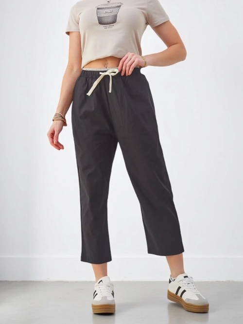 Royalfashion Bavlnené široké nohavice pre ženy s viazaním