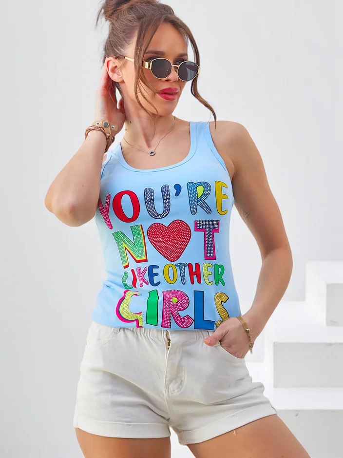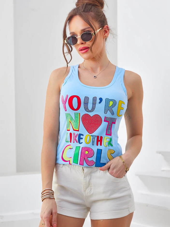 - Dámský bavlněný top s ramínky s jedinečnými potisky, který kombinuje pohodlí s trendy designem. Lehký a prodyšný, ideální pro letní dny a volnočasové outfity.