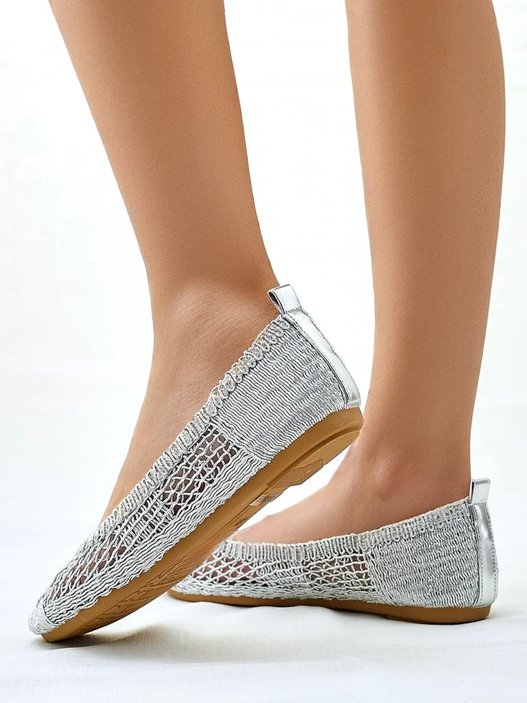 - Unikátne baleríny vyrobené z perforovanej tkaniny s okrúhlou špičkou. Mäkká ekologická kožená stielka poskytuje pohodlie. Sú ideálne na elegantné a trendy outfity!