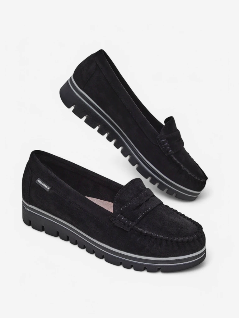 Odkrijte nove črne mokasine Sabella, ki združujejo eleganco z izjemnim udobjem. Izdelani iz visokokakovostnega ekološkega semiš usnja, ti čevlji niso le stilski, ampak tudi skrbijo za okolje. Naravno usnje v vložku zagotavlja odlično zračnost in mehkobo, zaradi česar je nošenje ves dan čisti užitek. Zahvaljujoč nizki peti višine 3,5 cm so ti mokasini idealni tako za delo kot za sproščena srečanja s prijatelji.