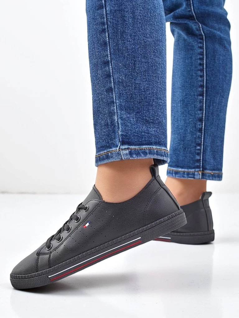 • Klasické tenisky vyrobené z eko kože, interiér je podšitý tkaninou. Veľmi pohodlné, na šnurovanie. Obuv sa hodí k mnohým každodenným štýlom!