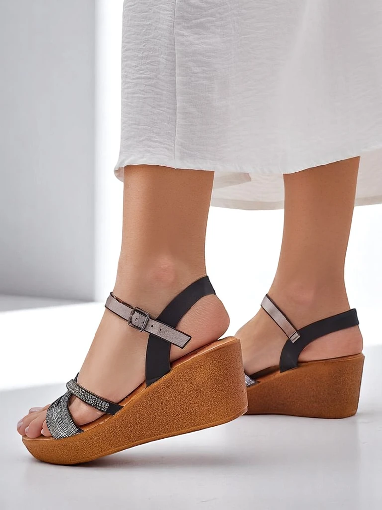 - Objavte eleganciu s sandálmi Eclat. Úžasné na klinovom opätku, ozdobené trblietavými kamienkami a jemným trblietaním, dokonale zdôrazňujú letný lesk. Kombinácia komfortu a luxusného vzhľadu – ideálne na akúkoľvek špeciálnu príležitosť!