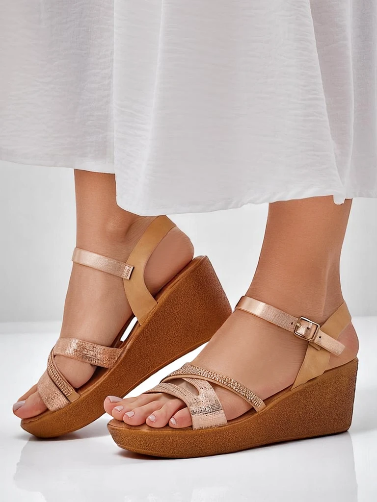 Kráľovná módy Dámske wedge sandále s kryštálmi a trblietkami Eclat