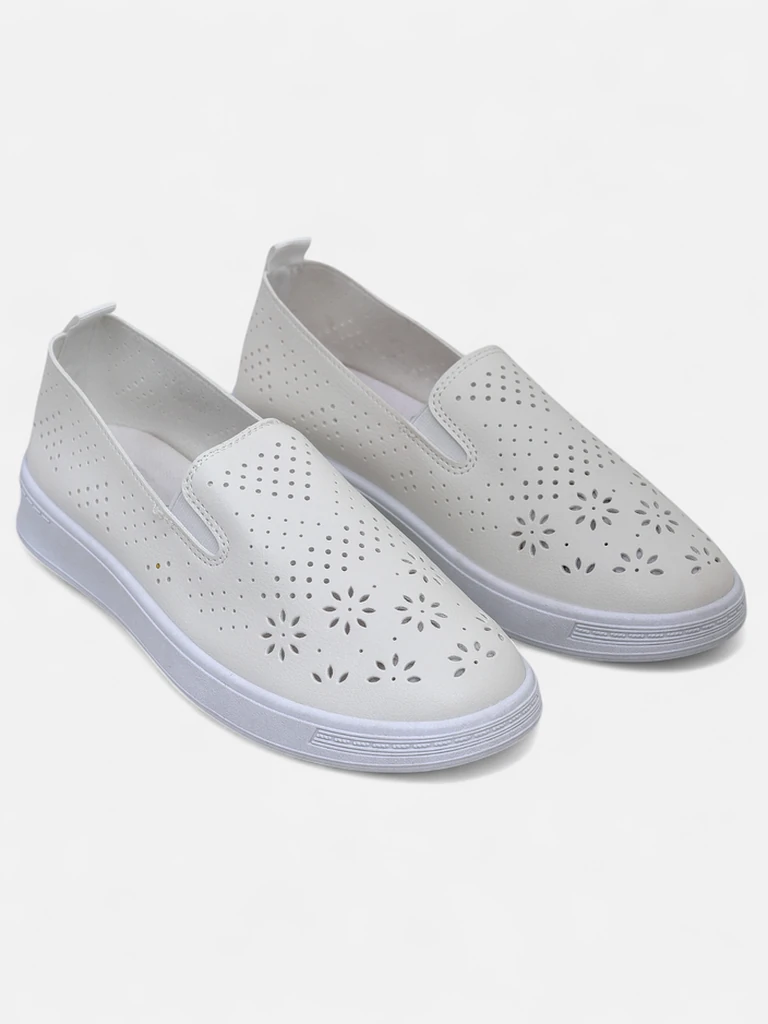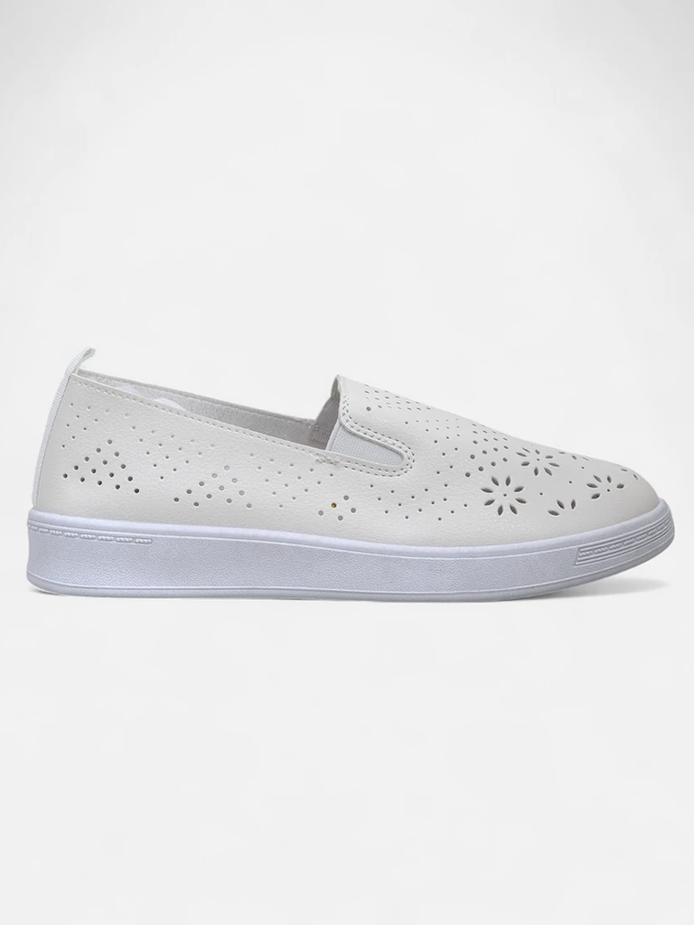- Dierkované dámske športové nazúvacie topánky z ekologickej kože. Vnútro je podšité textíliou. Perfektná voľba na každodenné nosenie!