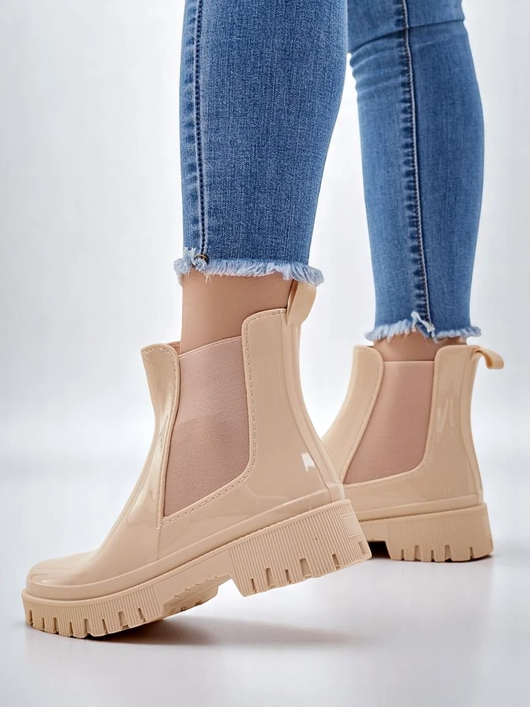 • Klasické dámske gumáky vyrobené z gumového materiálu s lakovaným povrchom. Stielka je vyrobená z textilného materiálu. Obuv je ideálna na daždivé jesenné dni!