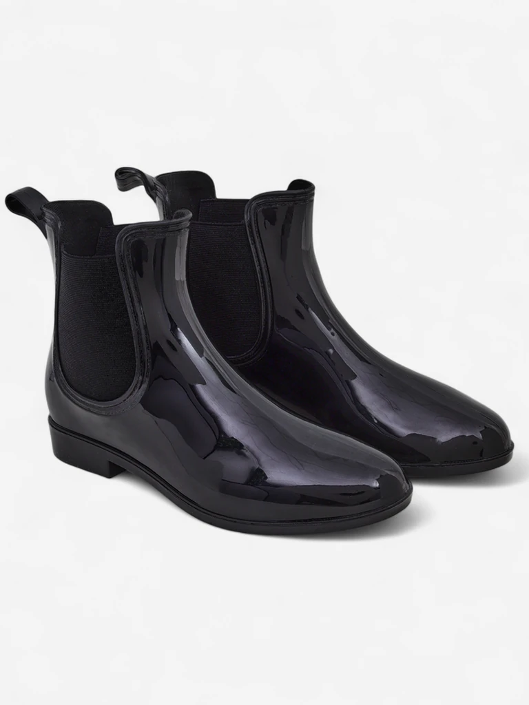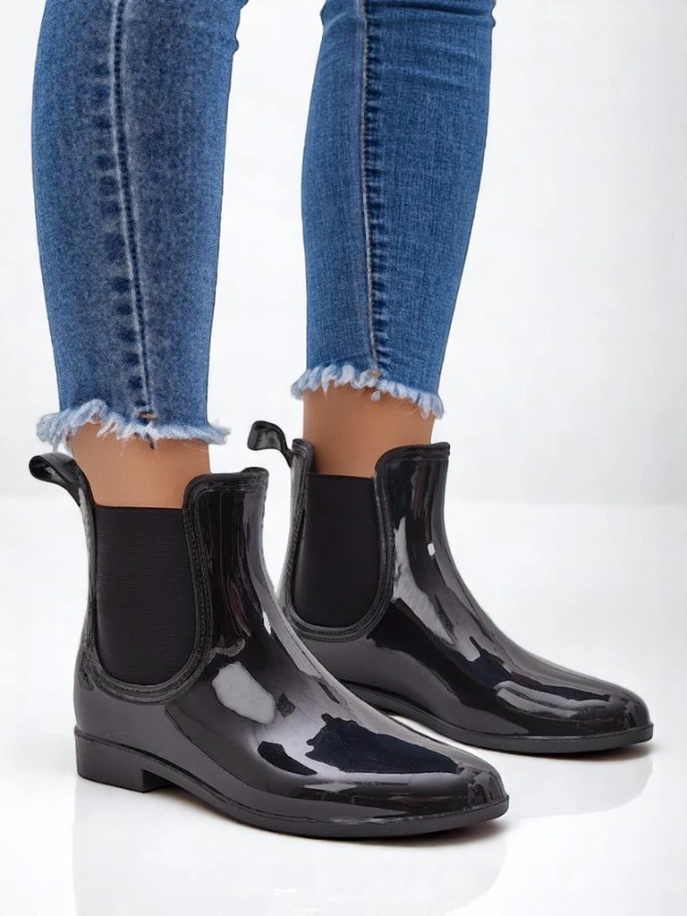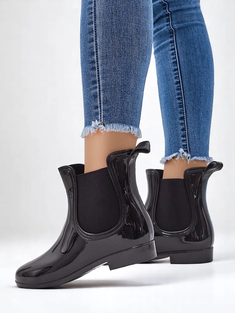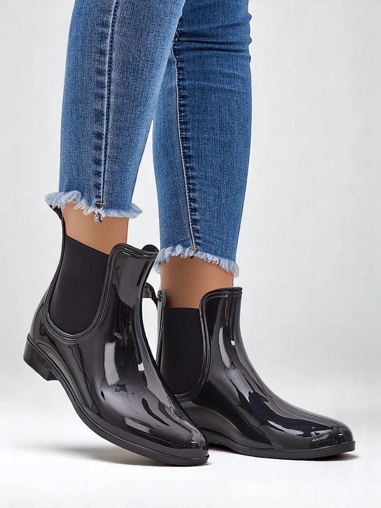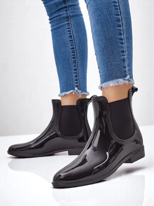 • Klasické dámske gumáky vyrobené z gumového materiálu s lakovaným povrchom. Stielka je vyrobená z textilného materiálu. Perfektná obuv na jesenné daždivé dni!