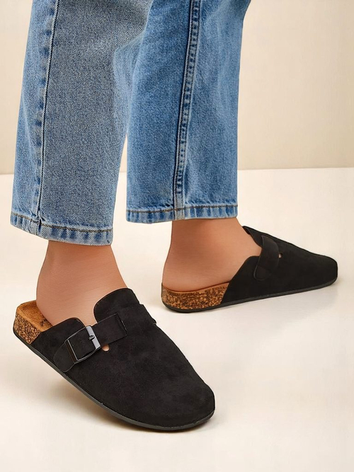 - Nádherné uzavreté dámske šľapky vyrobené z ekologickej semišovej kože. Gumená podrážka s ekologickou semišovou stielkou zdobenou materiálom v štýle korku. Model v zaujímavom farebnom prevedení. Perfektne dopĺňajú letné outfity!