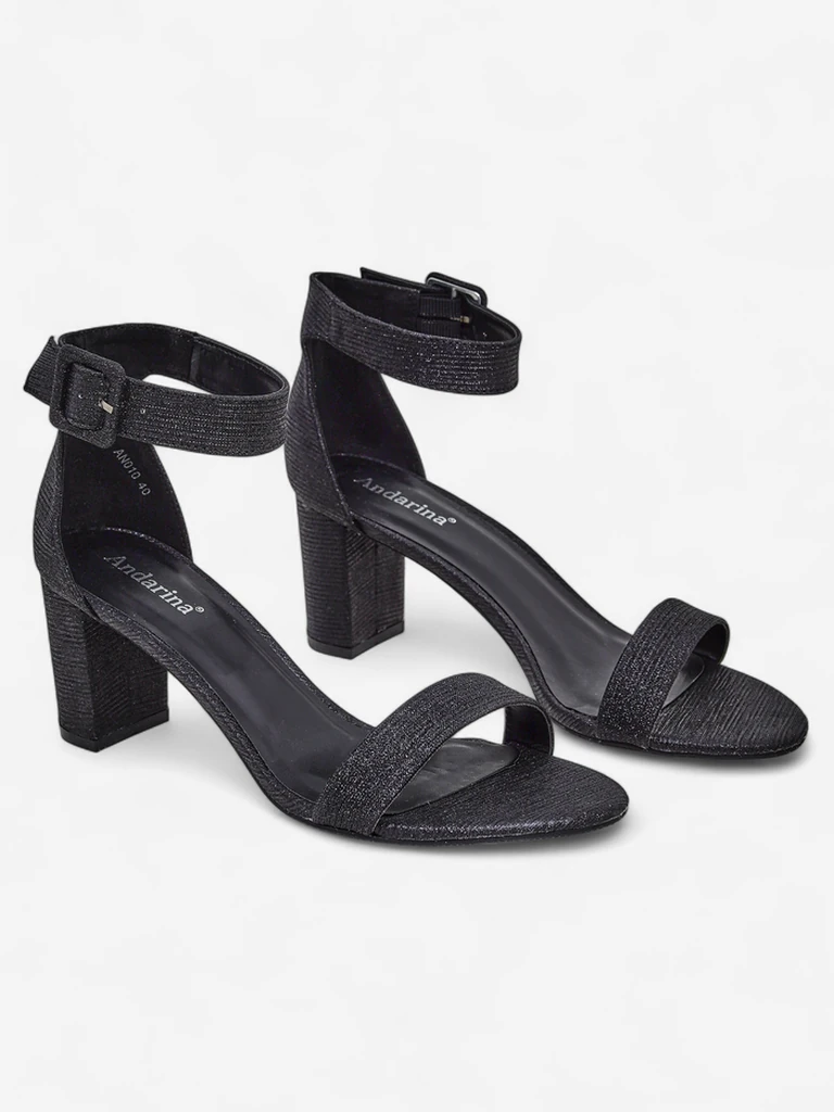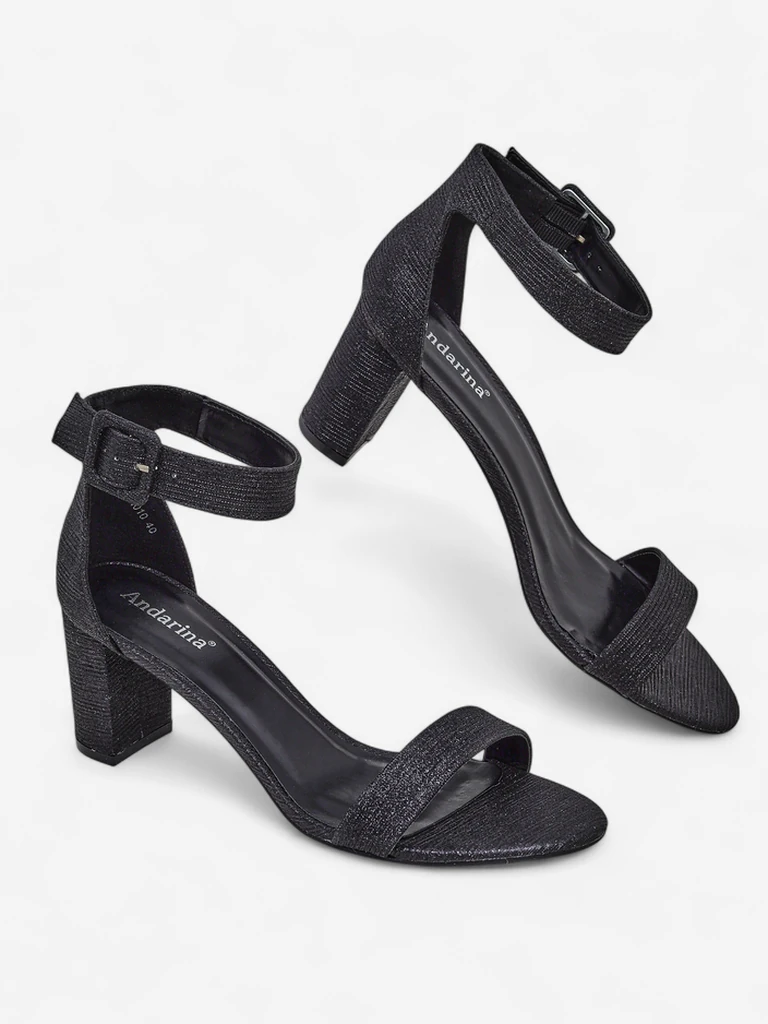 - Dámske sandále s blokovým podpätkom - perfektný nápad na horúce letné dni. Model je vyrobený z trblietavého materiálu s ekologickou koženou stielkou. Topánky sú zapínané na pracku. Kombinácia štýlu a pohodlia!