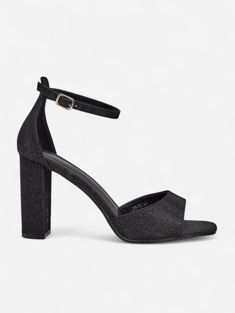 - Dámske sandále na blokovom podpätku - dokonalý nápad na horúce letné dni. Model je vyrobený z látky s trblietaním a má ekologickú koženú stielku. Obuv má zapínanie na pracku. Kombinácia štýlu a pohodlia!