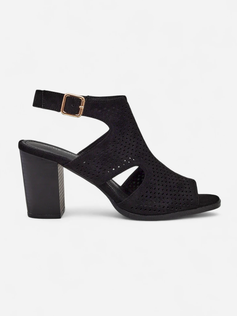 - Dámske sandále s výrezmi a blokovým podpätkom so zvrškom. Sú vyrobené z ekologického semišu a stielka je z ekologickej kože. Obuv sa zapína prackou vzadu. Perfektné na vytvorenie módnych letných outfitov!