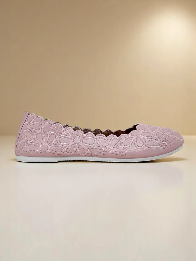 - Výnimočné baleríny vyrobené z látky s okrúhlou špičkou. Vrch je zdobený jemnou kvetinovou výšivkou. Mäkká látková stielka poskytuje pohodlie. Sú perfektné pre elegantné a módne outfity!