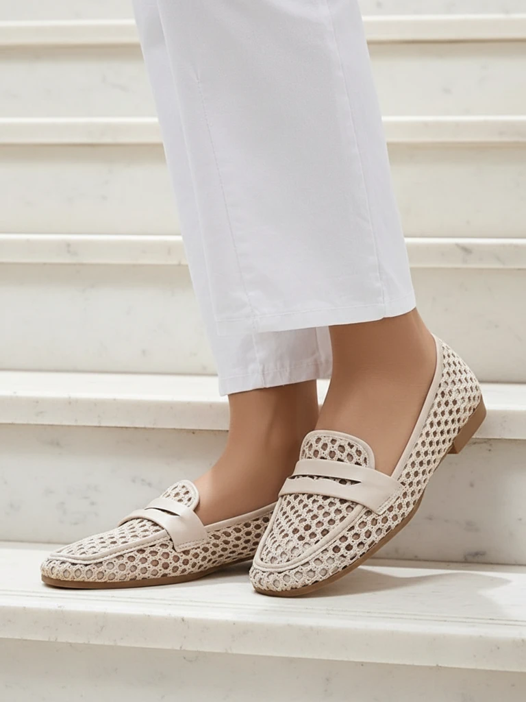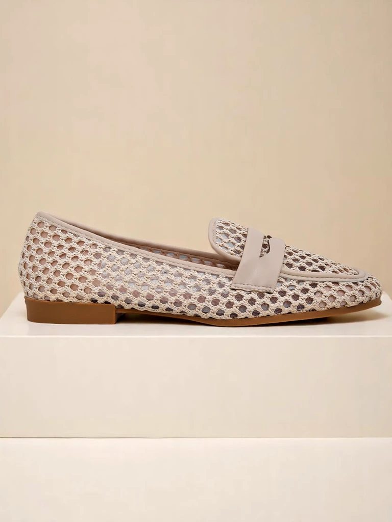 Bež mokasini Royalfashion Primavera Aelia iz tkanine z mandljasto obliko