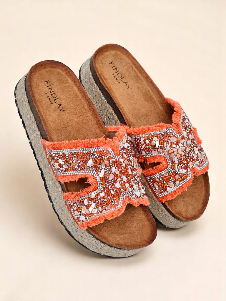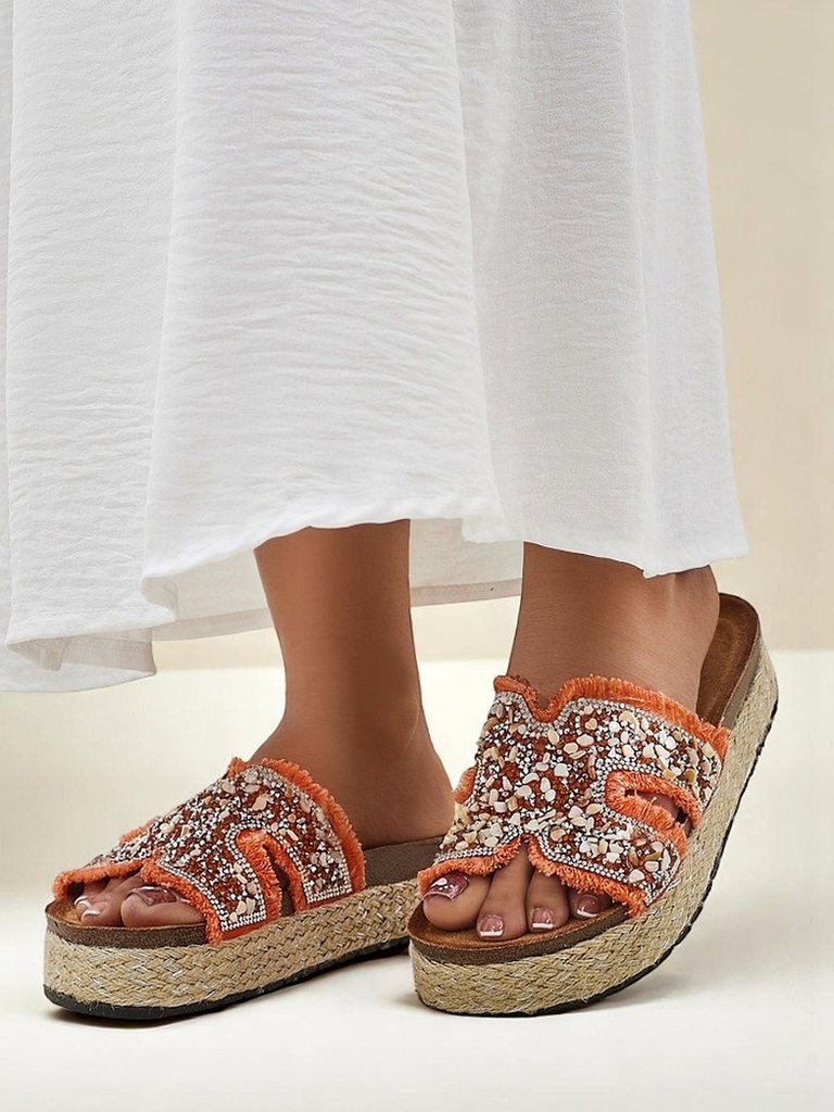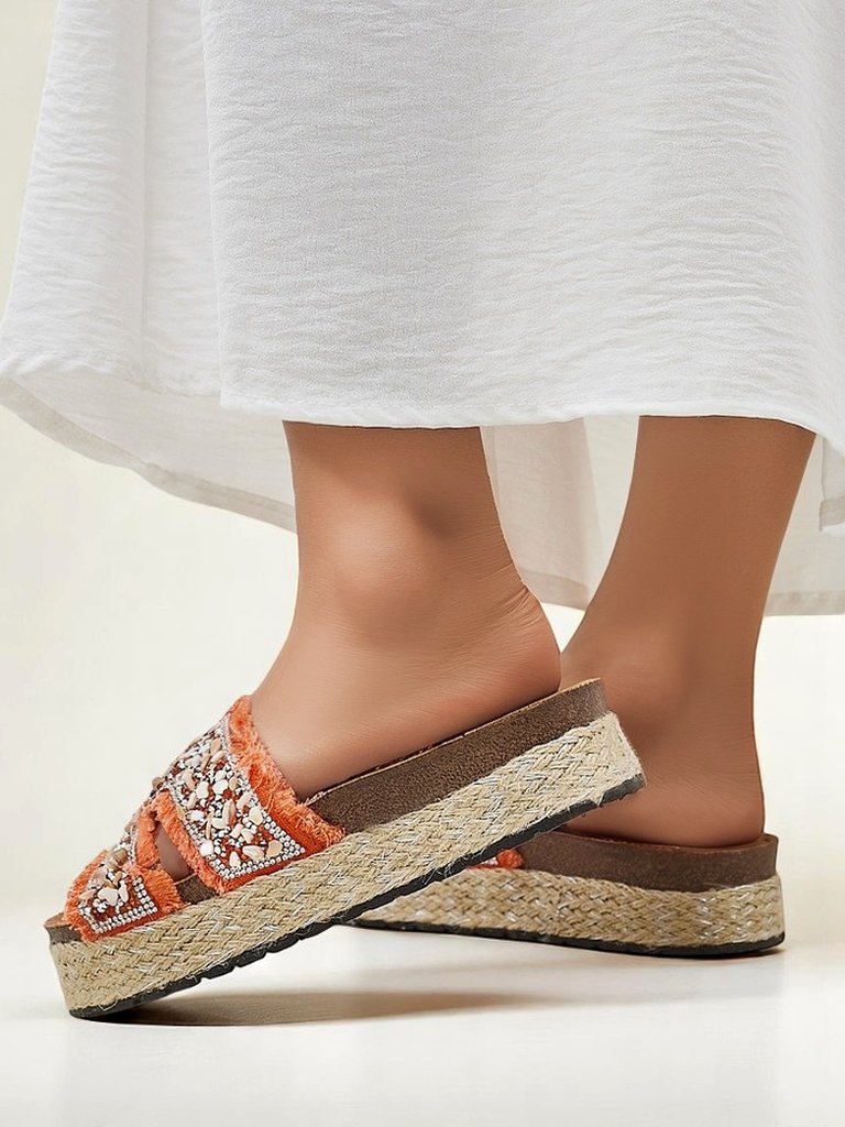 - Dámske šľapky s prímorskými ozdobami vyrobené z textilu, s ekologickou semišovou stielkou a hrubšou podrážkou – štýl a pohodlie na leto.