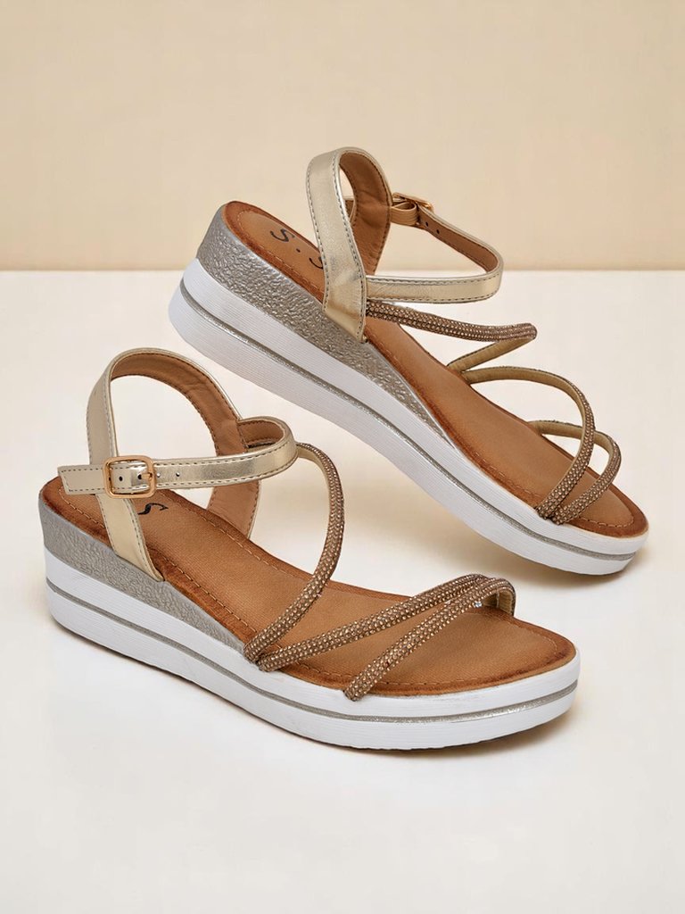 - Objavte eleganciu v týchto sandáloch. Ohromujúce na klinovom podpätku, zdobené trblietavými kryštálikmi, dokonale zvýrazňujú letný žiar. Spojenie pohodlia a luxusného vzhľadu – perfektné na každú výnimočnú príležitosť!