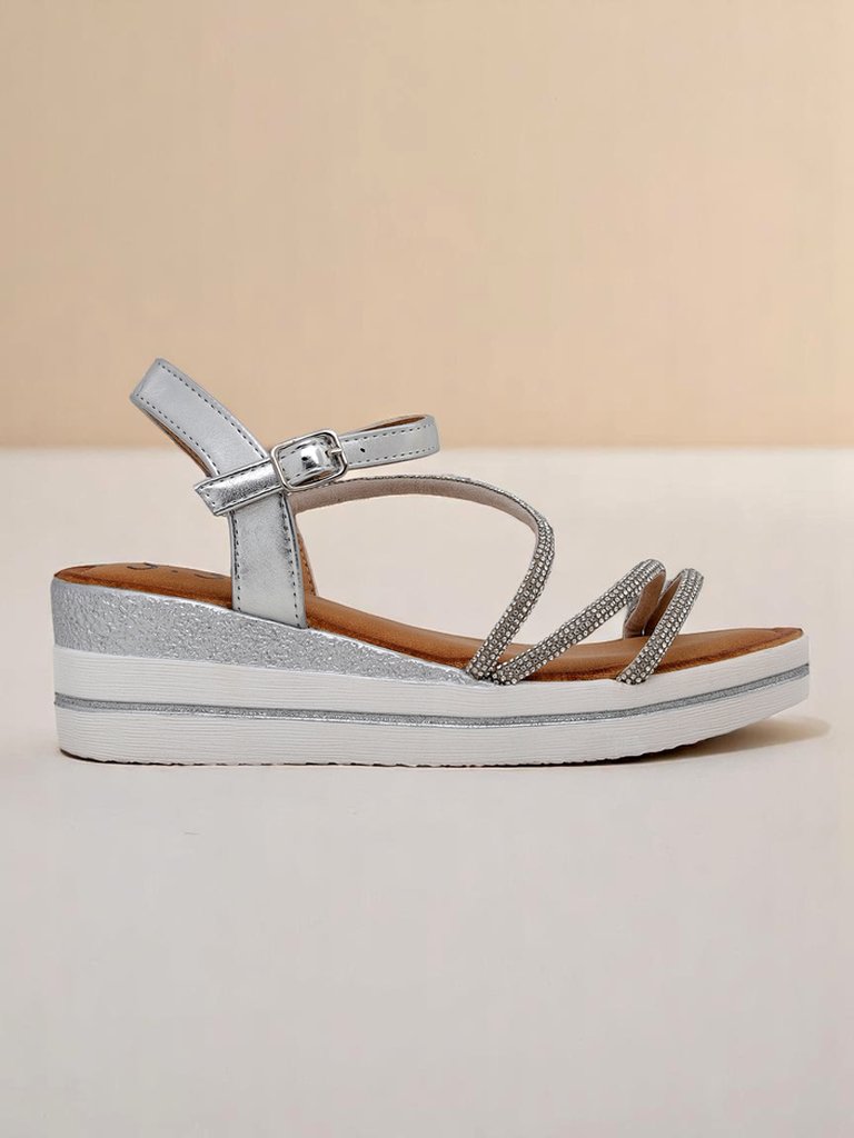 - Objavte eleganciu v týchto sandáloch. Ohromujúce na klinovom podpätku, zdobené trblietavými kryštálikmi, dokonale zvýrazňujú letný žiar. Spojenie pohodlia a luxusného vzhľadu – perfektné na každú výnimočnú príležitosť!