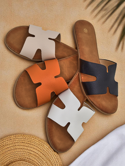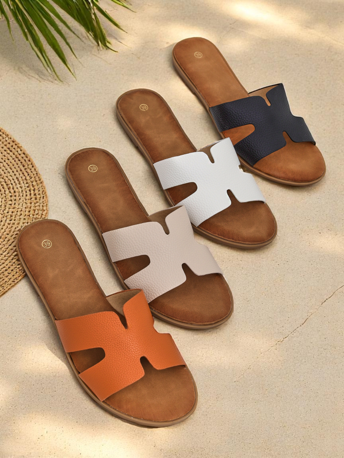Papuče Aurelia sú stelesnením letnej elegancie a pohodlia. Vyrobené z vysoko kvalitnej ekologickej kože, zaisťujú komfort nosenia po celý deň. Jemne štruktúrovaný povrch im dodáva jemný šik a výrezy na zvršku nielen spríjemňujú dizajn, ale aj zaisťujú dostatočné vetranie.