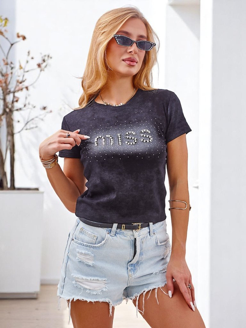 Royalfashion Dámske bavlnené tričko s kamienkami MISS