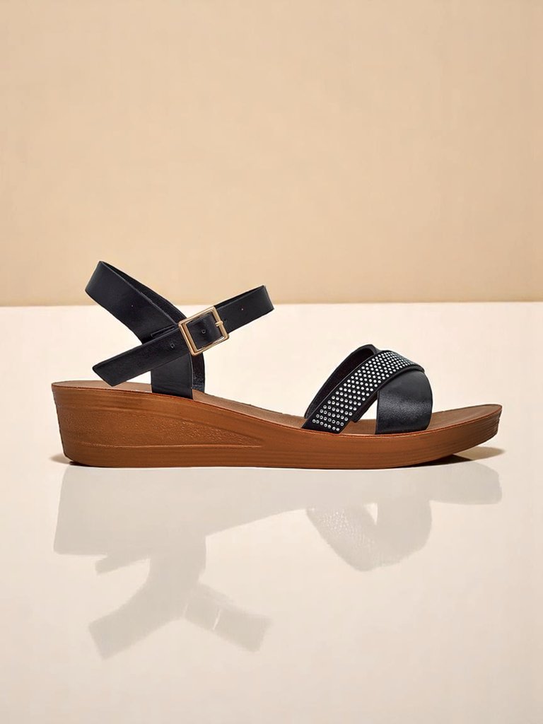 Royalfashion Dámske sandále na klinovom podpätku s kamienkami Allona