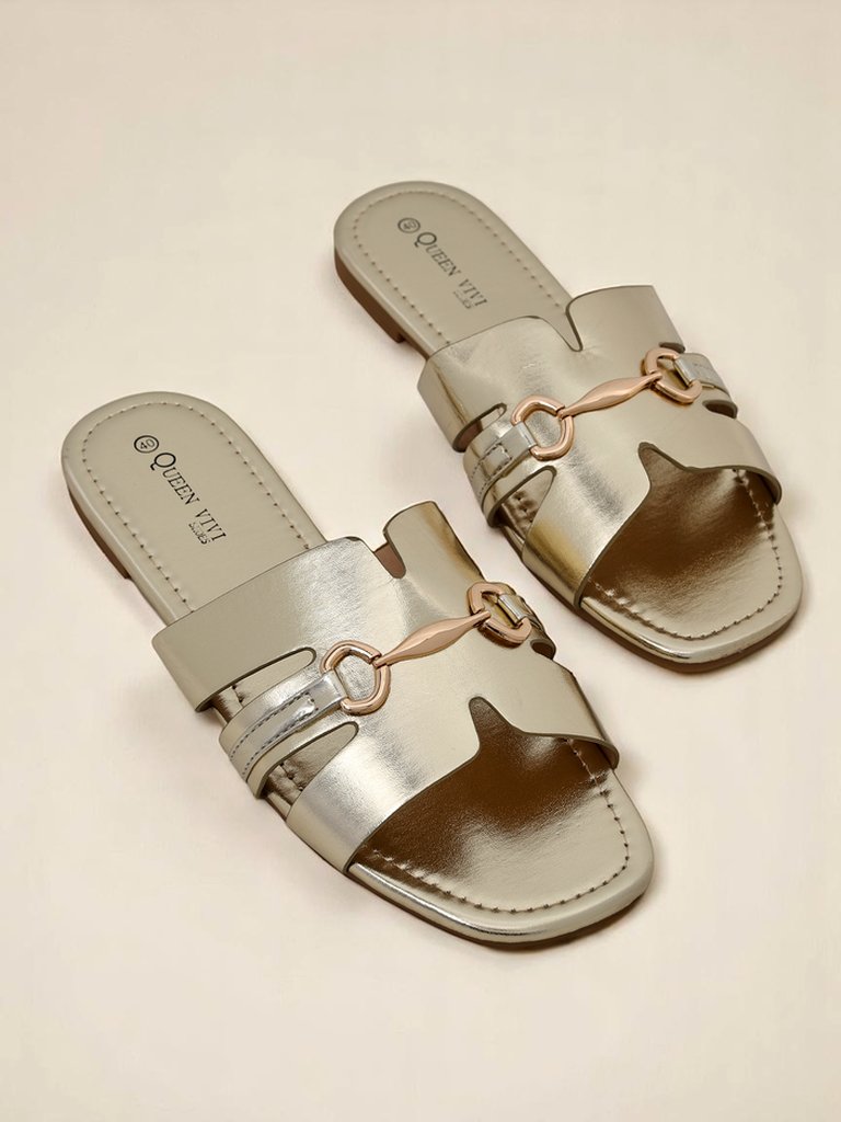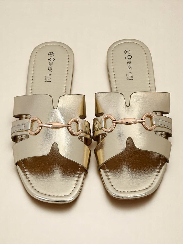 - Sandále z ekologickej kože, zdobené jemnou zlatou ozdobou. Elegantná jednoduchosť a pohodlie, ktoré sa hodia k akémukoľvek letnému outfitu.
