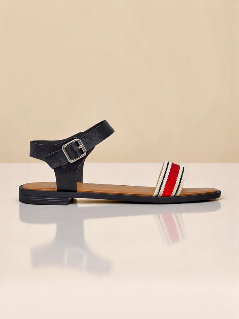 Aurelia Striscia sú dámske sandále inšpirované klasickým stredomorským štýlom, vytvorené pre komfort a univerzálnosť. Zvršok je vyrobený z vysoko kvalitnej, mäkkej ekokože, ktorá je odolná, pevná a šetrná k životnému prostrediu. Páskový remienok cez prsty je vyrobený z bavlnenej tkaniny s charakteristickými čierno-červenými pruhmi, ktoré dodávajú originalitu a stredomorský nádych. Stielka zo syntetickej kože je mäkká a tlmí každý krok, zaisťuje pohodlie aj pri dlhodobom nosení. Nastaviteľné zapínanie na kovovú pracku sa prispôsobí tvaru chodidla a zvyšuje stabilitu sandálov. Ľahká, ohybná podrážka z pružného TPR zaisťuje priľnavosť a odolnosť. Všetky použité materiály boli testované na bezpečnosť pre pokožku a nespôsobujú podráždenie.Výhody pri používaní Aurelia Striscia sú ľahkosť, priedušnosť a bezchybné pohodlie. Bavlnený remienok jemne obopína chodidlo, zabraňuje odreninám a zaisťuje prirodzenú priepustnosť vzduchu. Moderný dizajn podrážky dodáva sandálom minimalistický vzhľad a zároveň módny, stredomorský akcent.Návrhy na styling:1. Casual štýl – skombinujte sandále Aurelia Striscia s ľanovými nohavicami a bielou košeľou na každodenné vychádzky a stretnutia s priateľmi.2. Boho vzhľad – kombinujte s dlhými, vzdušnými maxi šatami a súpravou jemných náramkov na leto v meste.3. Verzia do práce a na prechádzku – s chinos nohavicami a sakom pre voľnejší, business casual štýl doplnený módnymi doplnkami.Údržba: Čistite vlhkou handričkou s jemným mydlom. Vyhnite sa namáčaniu vo vode a vystaveniu priamemu slnečnému žiareniu – to chráni štruktúru materiálu. Skladujte na vetranom mieste, najlepšie v pôvodnej krabici alebo v textilnom vrecku. Aurelia Striscia zapadá do aktuálnych trendov minimalizmu a návratu ku klasickým, funkčným modelom s nádychom retro. Farebná tkanina láme monotónnosť a robí zo sandálov ideálny doplnok na letné mesiace, či už do mestského alebo dovolenkového štýlu. Tieto sandále sú skvelou voľbou pre tých, ktorí si cenia komfort a módny, taliansky dizajn.