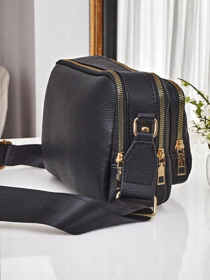- Malá kabelka z eko kože s elegantným embossovaním. Má 2 priehradky, 3 vrecká a nastaviteľný popruh — ideálna na každodenné nosenie, spája štýl s funkčnosťou.